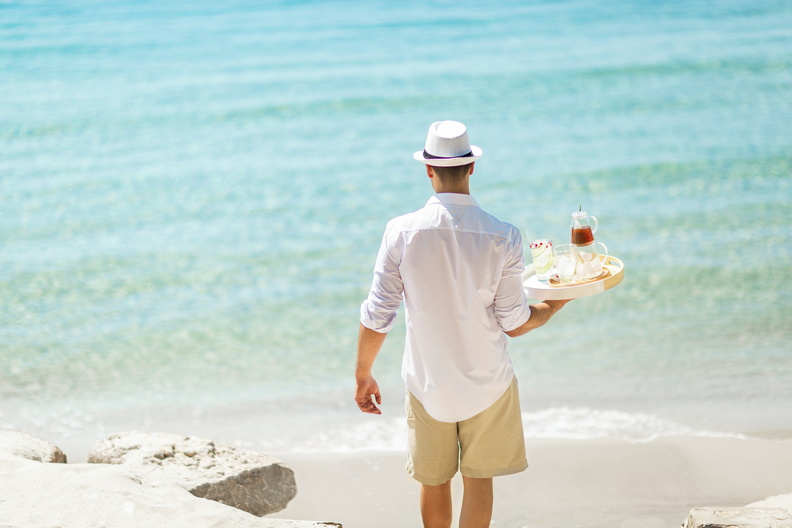 “Sani Beach Experience” dedicated personnel serve refreshments and snacks up to the sunbeds (additional charge)